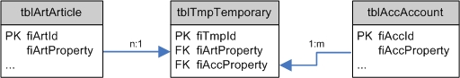 n:m-Verknüpfungen kommen vergleichsweise zu 1:n- und 1:1-Verknüpfungen selten vor. Sie können durch zwei 1:n-Verknüpfungen abgebildet werden. Dazu wird in einer weiteren Tabelle eine Verbindung zwischen zwei 1:n-Verknüpfungen definiert.