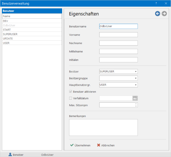 Für den Benutzer SUPERUSER können die Eigenschaften _UrmPropActive und _UrmPropExpirationDate nicht verändert werden.