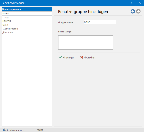 Benutzergruppen - Benutzergruppe hinzufügen
