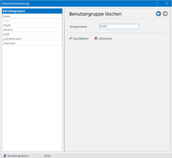 Benutzergruppen - Benutzergruppe löschen Löschen einer Benutzergruppe