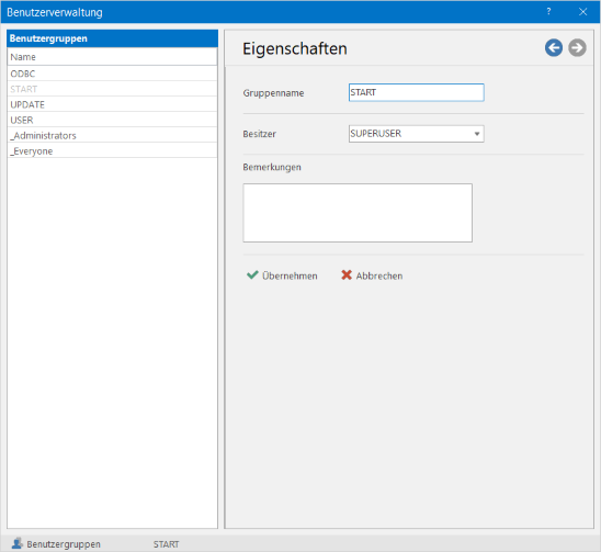 Benutzergruppen - Eigenschaften
