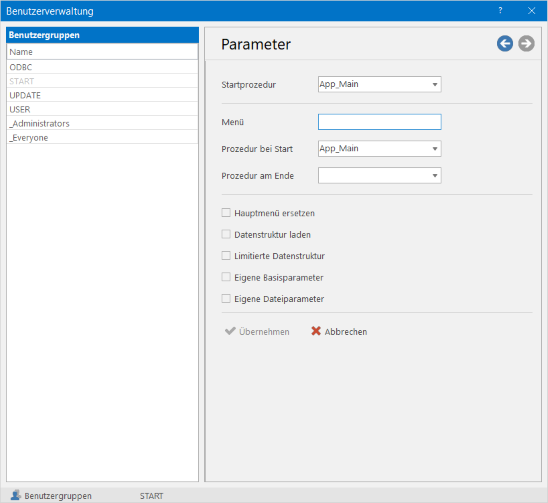 Benutzergruppen - Parameter Benutzerparameter des alten Benutzersystems
