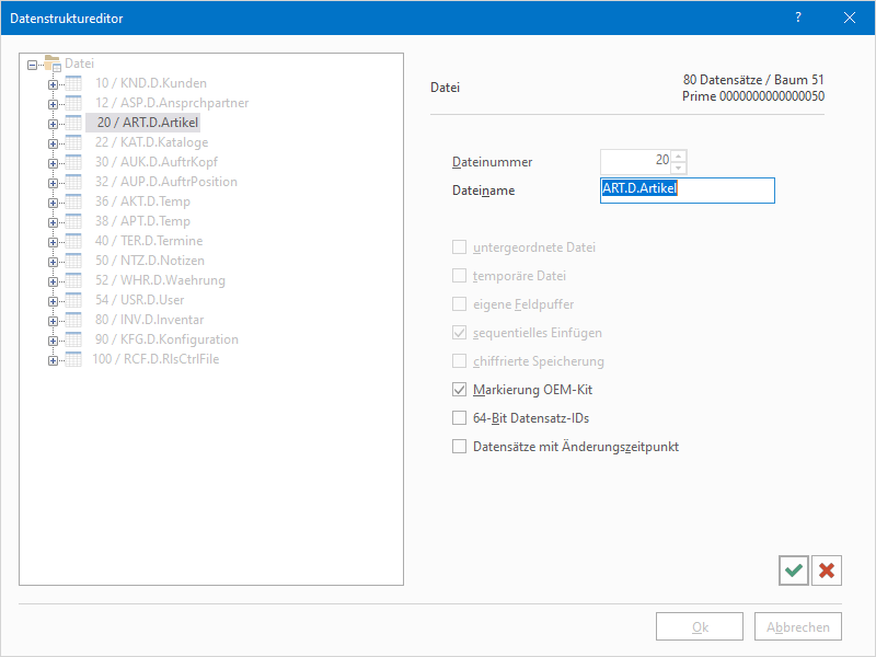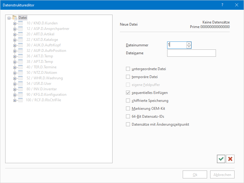 Für die Verwendung von untergeordneten Dateien besteht ab der Version 4.4 keine Notwendigkeit mehr. Der Parameter kann bei bestehenden Dateien nicht verändert werden. Die Datenstruktur von untergeordneten Dateien kann nicht verändert werden.