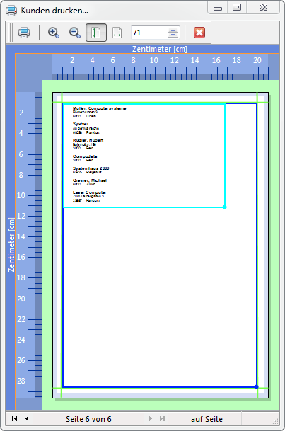 Der Seiteninhalt kann aus beliebigen Druckobjekten bestehen, die ebenfalls über die Objektpalette eingefügt werden.