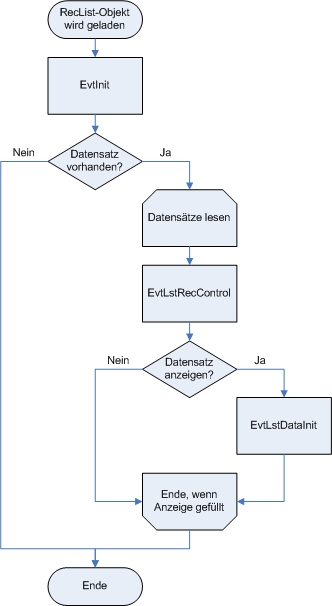 Die Ereignisse EvtLstRecControl und EvtLstDataInit werden solange durchgeführt, bis der Anzeigebereich der Liste gefüllt oder das Ende der Datei erreicht ist.