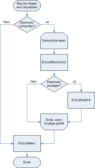 Für jeden gelesenen Datensatz wird das Ereignis EvtLstRecControl durchgeführt. Dieses Ereignis entscheidet, ob der Datensatz in der Liste angezeigt wird oder nicht.