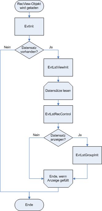 Die Ereignisse EvtLstRecControl und EvtLstGroupInit werden solange durchgeführt, bis der Anzeigebereich des RecView gefüllt oder das Ende der Datei erreicht ist.