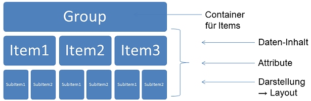 Zur Laufzeit wird für jeden angezeigten Datensatz eine Gruppe (Group) angelegt. Sie ist der Container, der die Items und SubItems enthält. Folgende Eigenschaften stehen bereit: