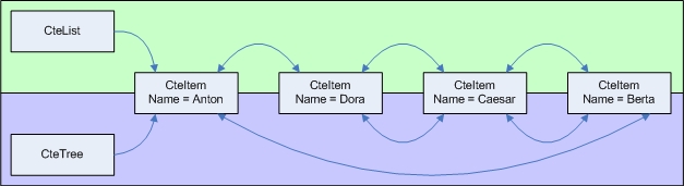 Jedes CteItem-Objekt kann gleichzeitig in einem CteList-Objekt und einem CteTree-Objekt enthalten sein.