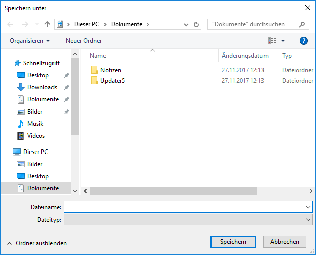 Option bei WinOpen (). Lädt den Systemdialog "Datei speichern".